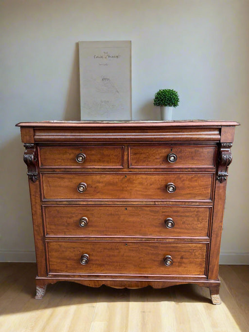 $1,695.00| /19TH CENTURY ENGLISH LARGE MAHOGANY CHEST OF DRAWERS WITH SPLAYED LEGS