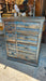 RUSTIC BLUE PAINTED 8 DRAWER CHEST