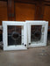 SET OF 5 SMALL SQUARE LEADED GLASS DORS WITH RONDELS