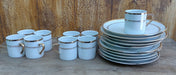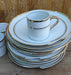 9 WHITE WTH GOLD BORDER SNACK PLATES WITH CUPS BY PORCELAIN EMPIRE