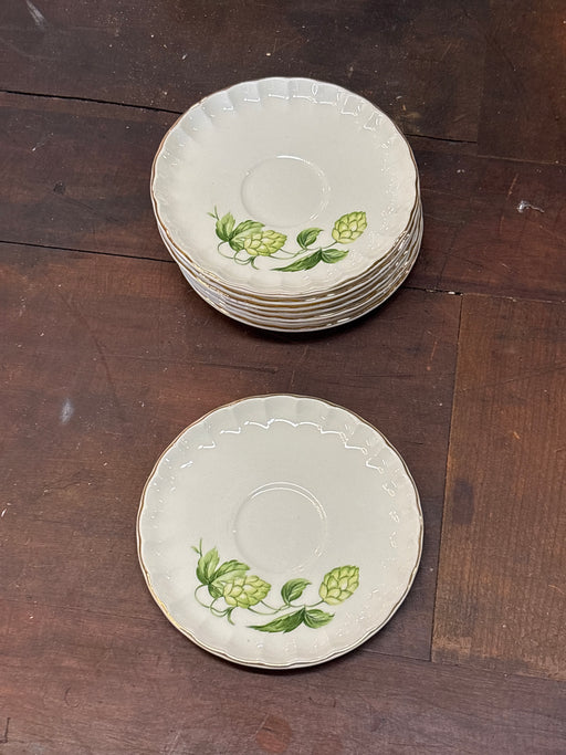 SET OF 8 PORCELAIN SAUCERS WITH GREEN PLANT
