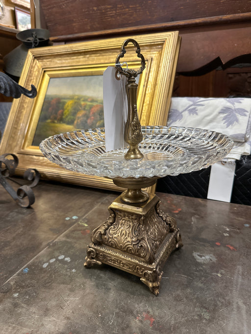 INDIAN BRASS WITH CRYSTAL FOOTED TIDBIT TRAY