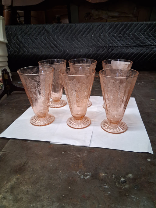 SET OF 6 PINK PINK DEPRESSION GLASS LUNCH PLATES