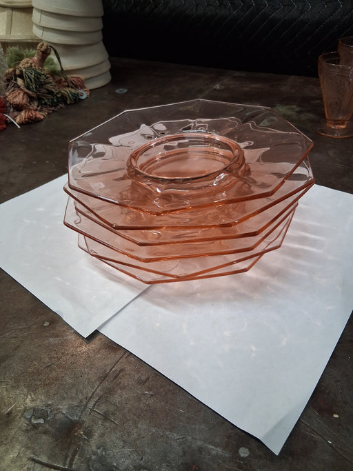 SET OF 6 PINK DEPRESSION GLASS OCTAGON LUNCH PLATES