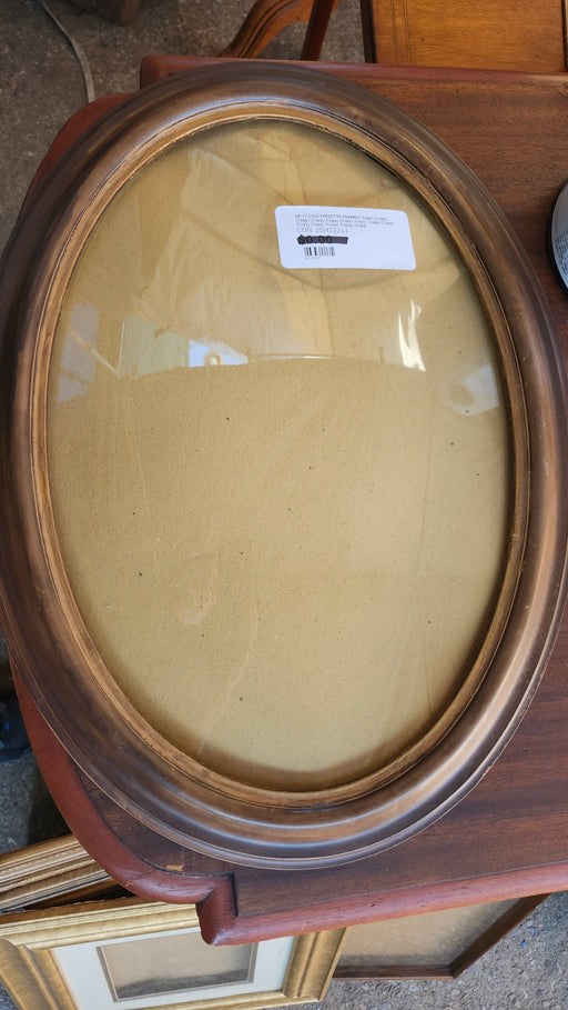 SMALL OVAL BUBBLE GLASS WOOD FRAME