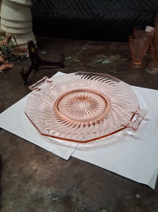 PINK DEPRESSION GLASS SWIRL 2 HANDLE TRAY