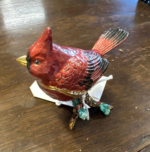 SMALL ENAMELED AND JEWELED CARDINAL BOX