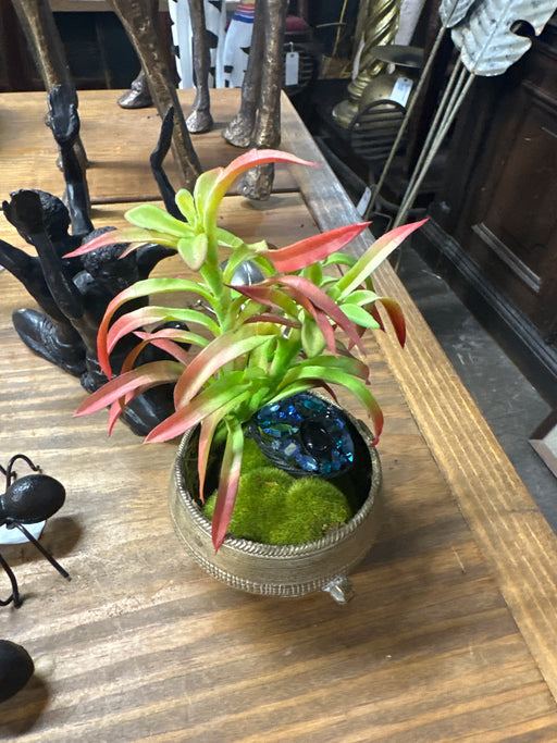 FAUX PLANT IN TINY BRASS POT WITH JEWELED BROACH