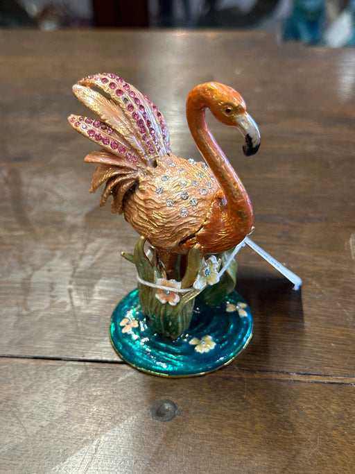 SMALL ENAMELED AND JEWELED FLAMINGO BOX