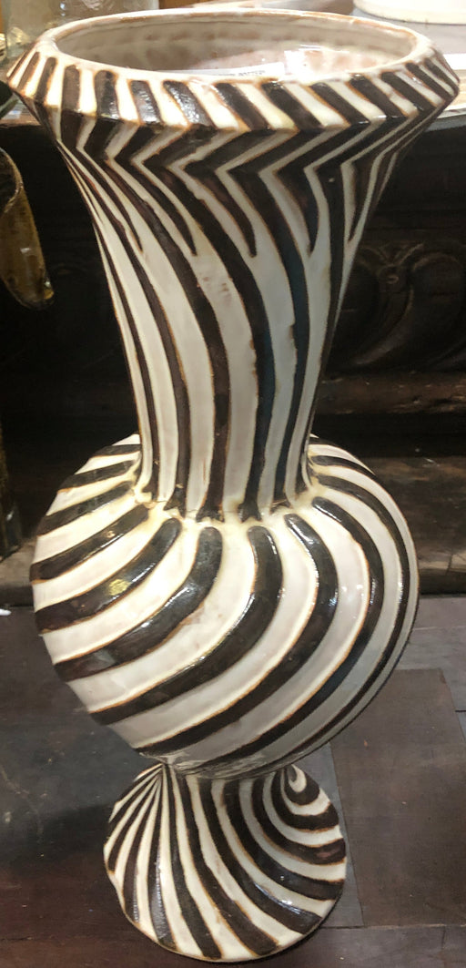 GLOBAL VIEWS SWIRL POTTERY BLACK AND WHITE VASE