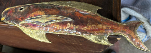 LARGE RED AND GOLD METAL FISH WALL HANGER