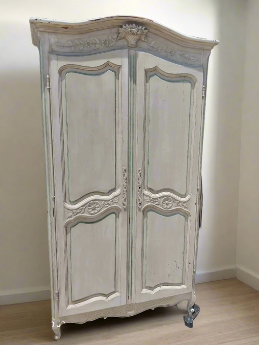 44 x 20 x 98 tall This incredible French figural carved single door bookcase features detailed figural carvings that enhance its elegant design. Ma...