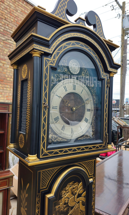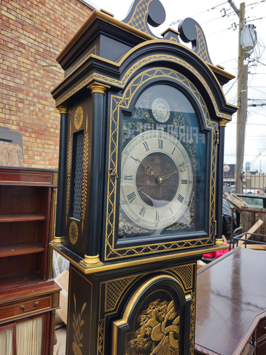 BLACK CHINESE STYLE GRANDFATHER CLOCK
