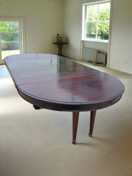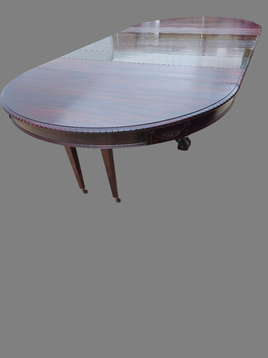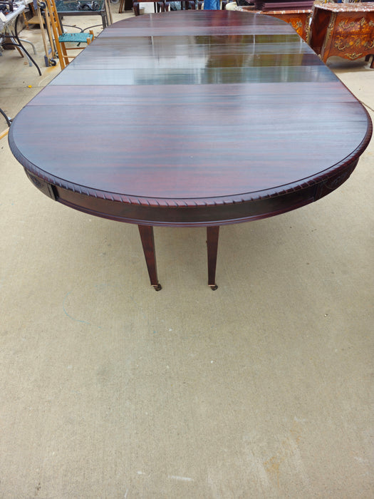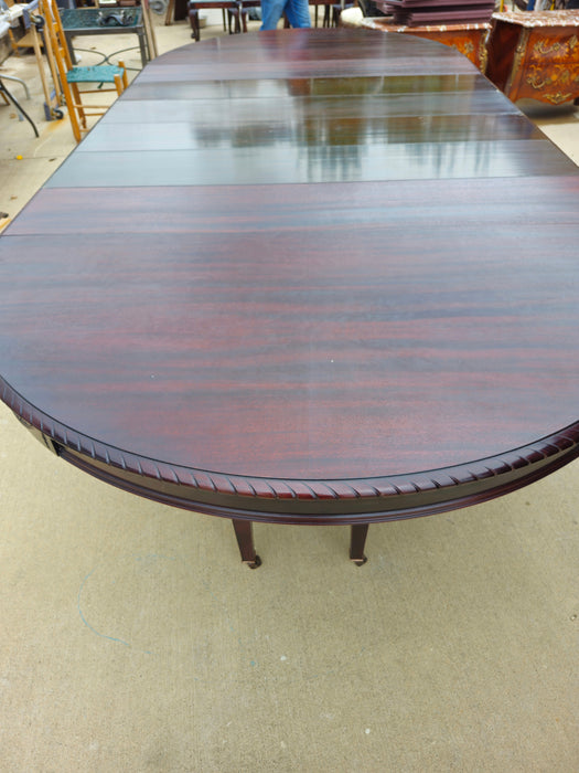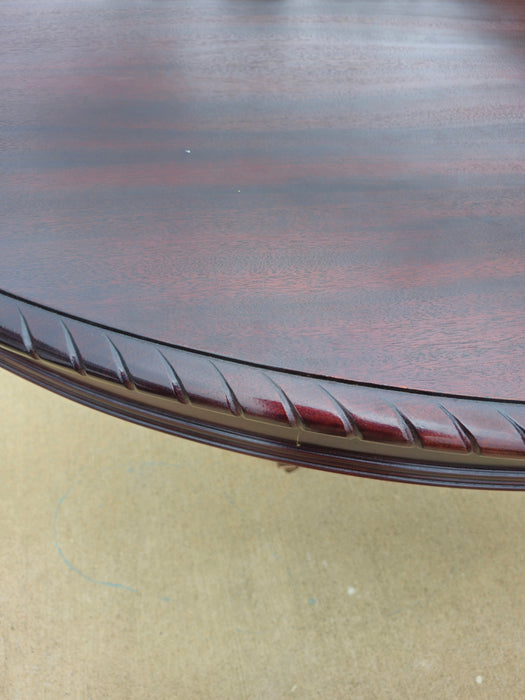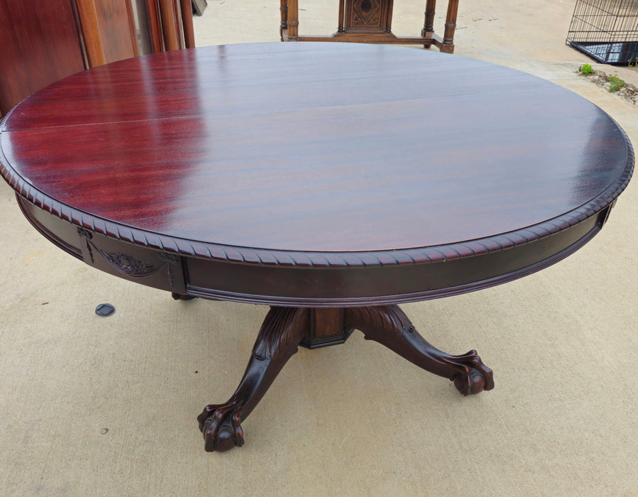 ROUND MAHOGANY CHIPPENDALE PEDESTAL BASE TABLE WITH 5 LEAVES