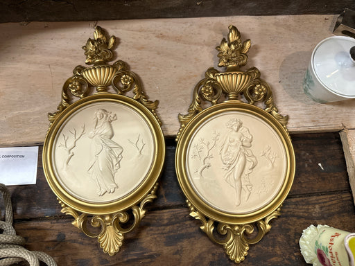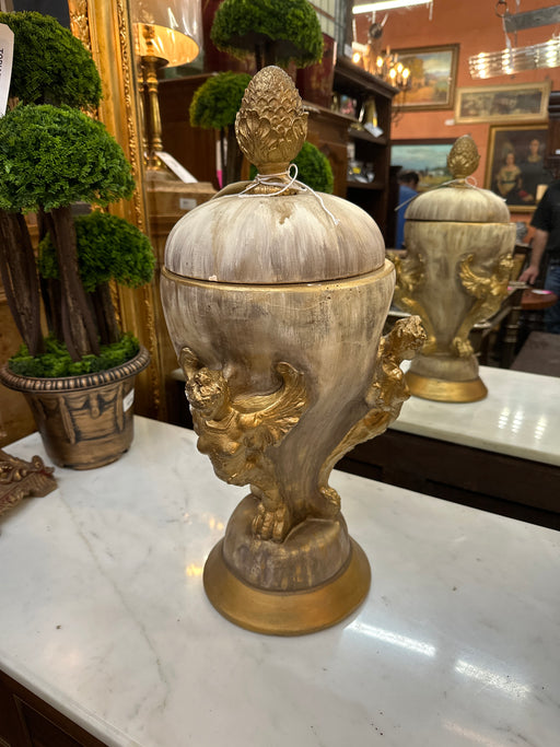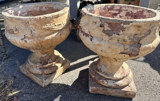 EARLY PAIR OF ANTIQUE ITALIAN CARVED WOOD AND GESSO URNS