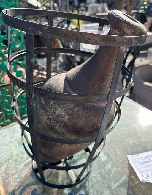 BLOWN GLASS AND TWIST IRON HANGING LANTERN