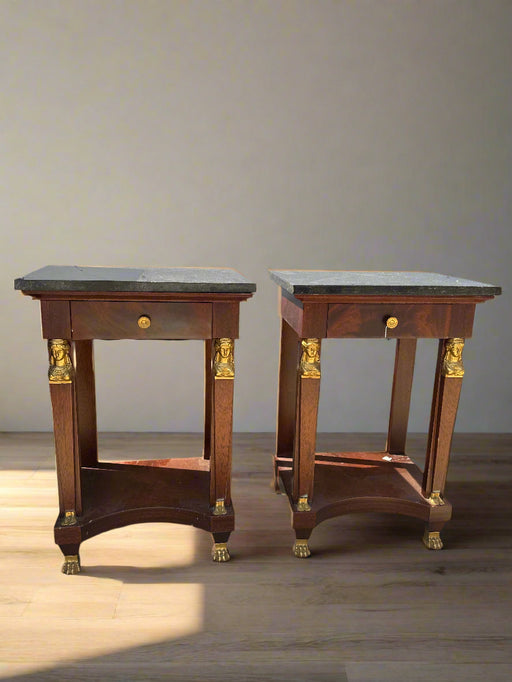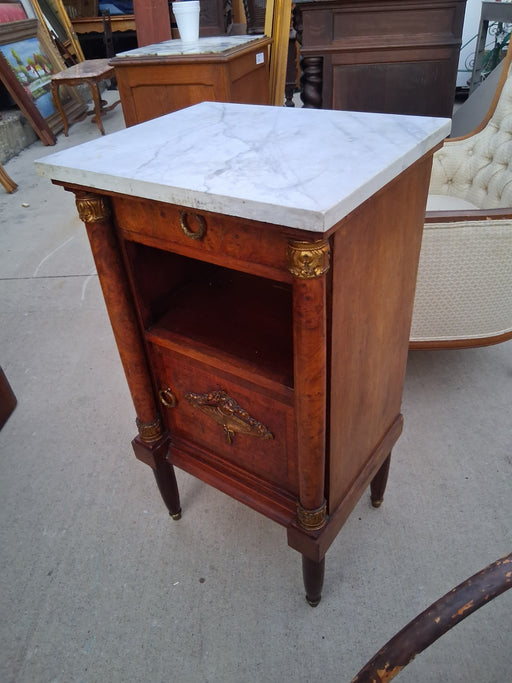 $395.00| /PAIR OF FRENCH EMPIRE MARBLE TOP SIDE CABINETS AS FOUND MARBLE