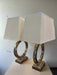 PAIR OF SILVER "O" SHAPED LAMPS WITH AS FOUND SHADES