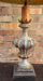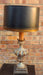 VINTAGE CARVED GILTWOOD AND GREY ITALIAN LAMP WITH BLACK SHADE