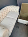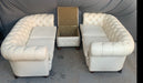 SET OF 2 WHITE LEATHER CHESTERFIELD LOVESEATS WITH MATCHING OTTOMAN