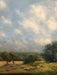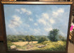 BURLED FRAME LANSCAPE OIL PAINTING ON BOARD OF MEADOW WITH CLOUDS