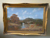 FRAMED FALL OIL PAINTING WITH TREES AND A SHACK BY A STREAM-SIGNED LOVETTA
