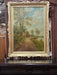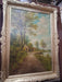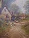 GILT FRAMED OIL PAINTING OF CHICKENS ALONG THE RIVER BANK AN A MAN IN A BOAT