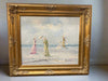 LARGE GOLD FRAMED PASTEL PAINTING OF LADIES AT THE BEACH