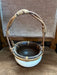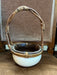 SMALL WHITE POTTERY PLANTER WITH BASKET HANDLE