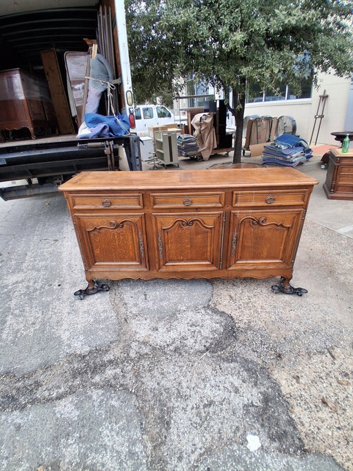 Original price $1,595.00Current price $1,395.00| /LARGE RUSTIC OAK SIDEBOARD WITH ORNATE IRON HINGES