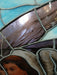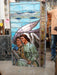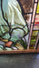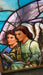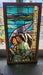 LARGE PAINTED AND STAINED GLASS WINDOW WITH PAIR OF ANGELS AS FOUND