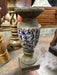 SMALL CAST STONE AND BLACK AND WHITE CERAMIC STAND