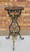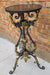 ORNATE IRON AND BRASS STAND WITH EMBOSSED METAL TOP