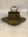 DOUBLE SIDED BRASS GRIFFIN INKWELL & LETTER HOLDER STAND