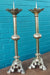 PAIR OF BRASS PRICKETTS (CANDLE STANDS) AS FOUND