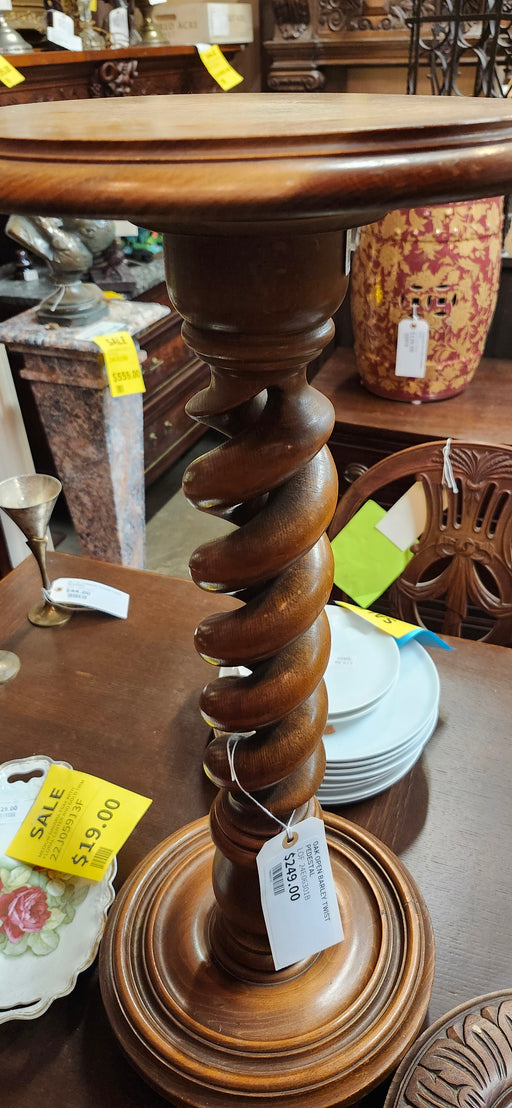 Original price $245.00Current price $215.00| /OAK OPEN BARLEY TWIST PEDESTAL WITH MELON BALL
