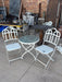 PAIR OF GOTHIC WHITE PATIO CHAIRS WITH BISTRO TABLE