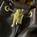 BROWN PURSE WITH SNAKE HANDLES AND FROG CINCH
