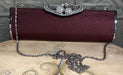 HARD CASE WITH BURGUNDY FABRIC AND RHINESTONES PURSE