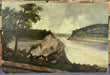 UNFRAMED OIL PAINTING OF BOULDER BY A LAKE