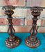 PAIR OF CARVED BRONZE FINISH WOOD CANDLE STICKS