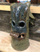 GREEN AND BLUE POTTERY HEAD WITH BROWN TONGUE BY TERRI WILDER