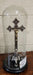 STANDING CHROME CRUCIFIX IN MEDIUM GLASS DOME